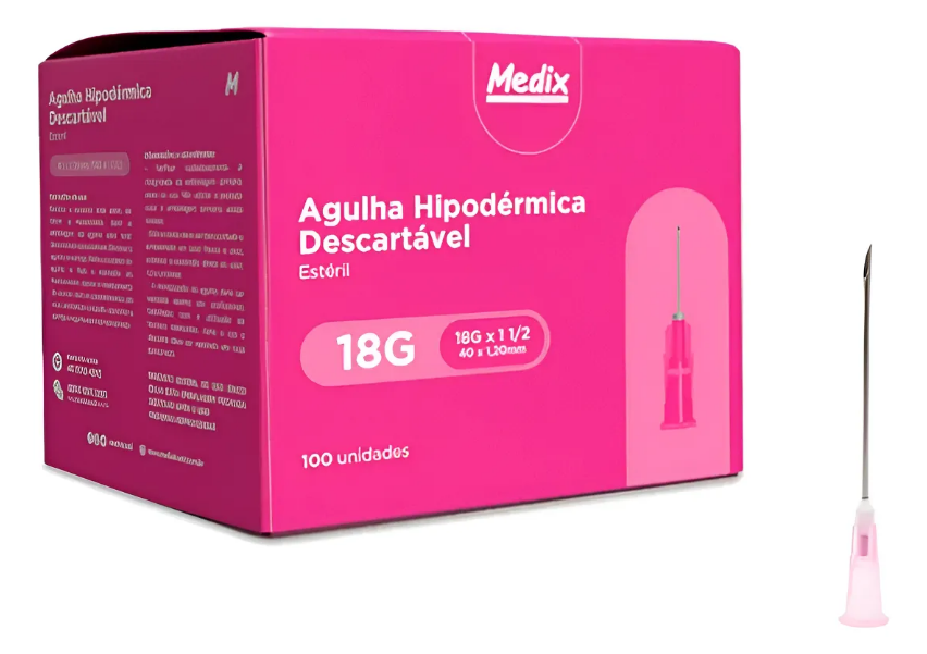 Agulha Hipodermica 18G x 1 1/2 40x1,20mm Rosa Medix 100 uni