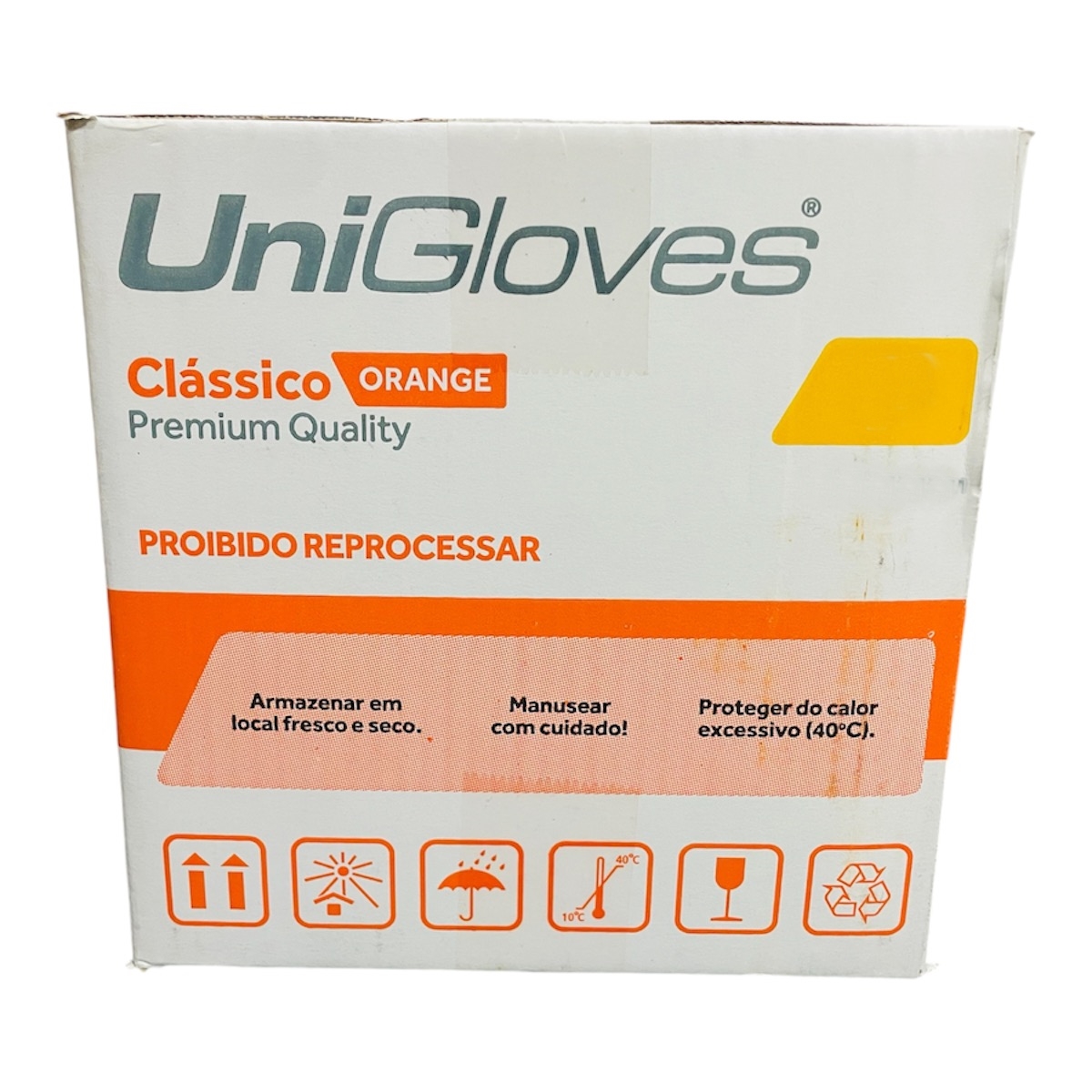 Luva Látex Orange Laranja c/ Pó Classico Unigloves