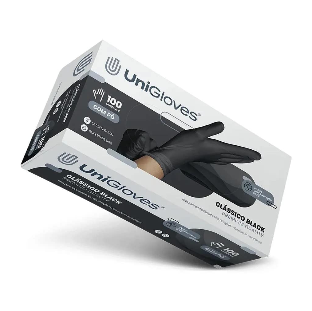 Luva Látex Preta Premium Quality Unigloves