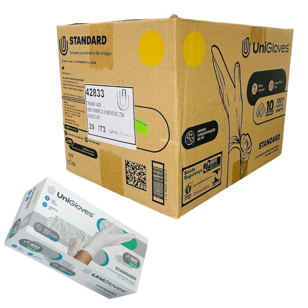 Luva Látex Branca c/ Pó Standard Unigloves